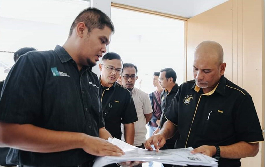 Lawatan kerja daripada Dato' Mohd Rusdi Bin Mohd Darus, Pengurus Besar KEJORA ke projek Perumahan Kampung Tersusun Kg. Paya yang dibangunkan oleh Kejora Land Development Sdn Bhd.
